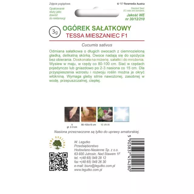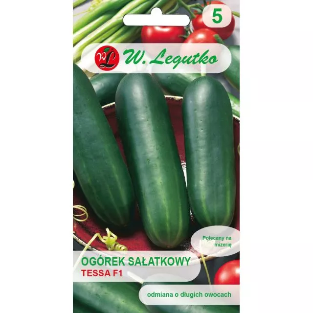 Ogórek sałatkowy Tessa mieszaniec F1  to odmiana sałatkowa o długich owocach z ciemnozieloną gładką, delikatną skórką. Owoce nadają się do spożycia bez obierania. Doskonała na mizerię, sałatki i do mrożenia.