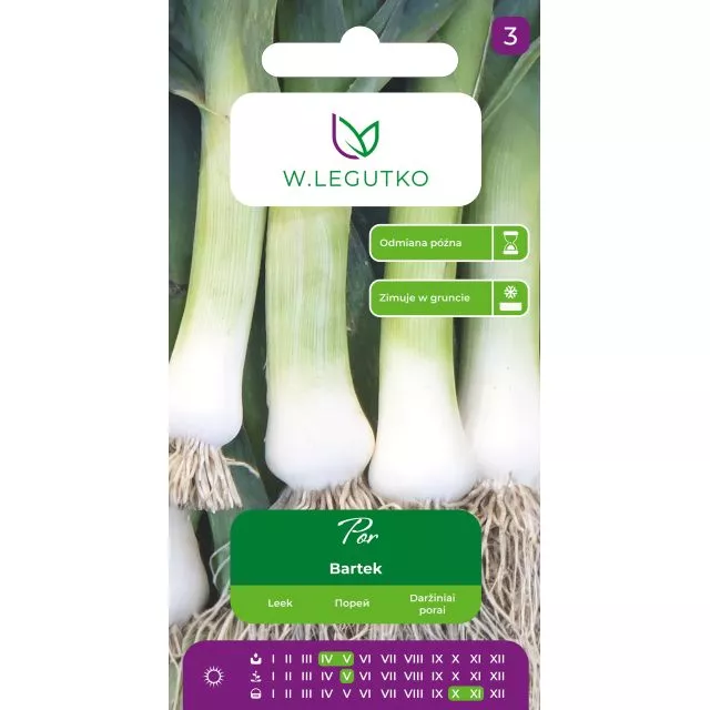 Por Bartek to odmiana późna doskonała do zimowego przechowywania, zimująca także w gruncie. Łodyga rzekoma walcowata, średnio gruba i średnio długa.